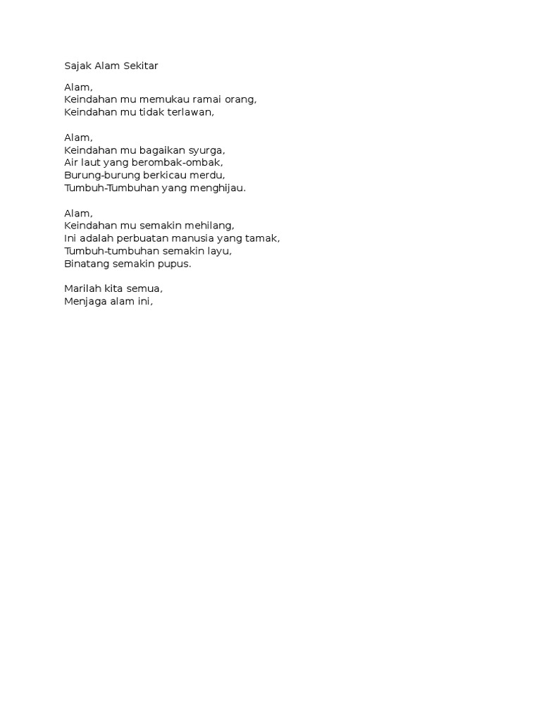 Text of sajak alam sekitar. Beberapa dampak yang timbul akibat aktivitas manusia meliputi. Koleksi Pantun Dan Sajak.